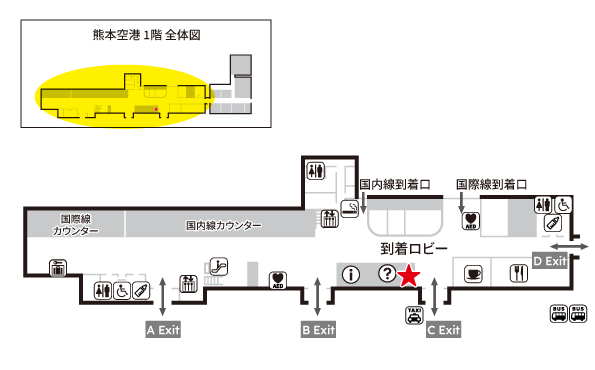 阿蘇くまもと空港 1F 到着ロビーでWi-Fiが必要な方、阿蘇くまもと空港 1F 到着ロビーへ移動中に予約したい方に便利です。