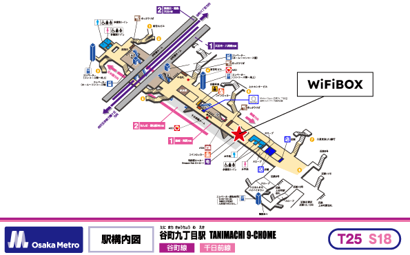 谷町九丁目駅 Osaka Metro 改札外でWi-Fiが必要な方、谷町九丁目駅 Osaka Metro 改札外へ移動中に予約したい方に便利です。