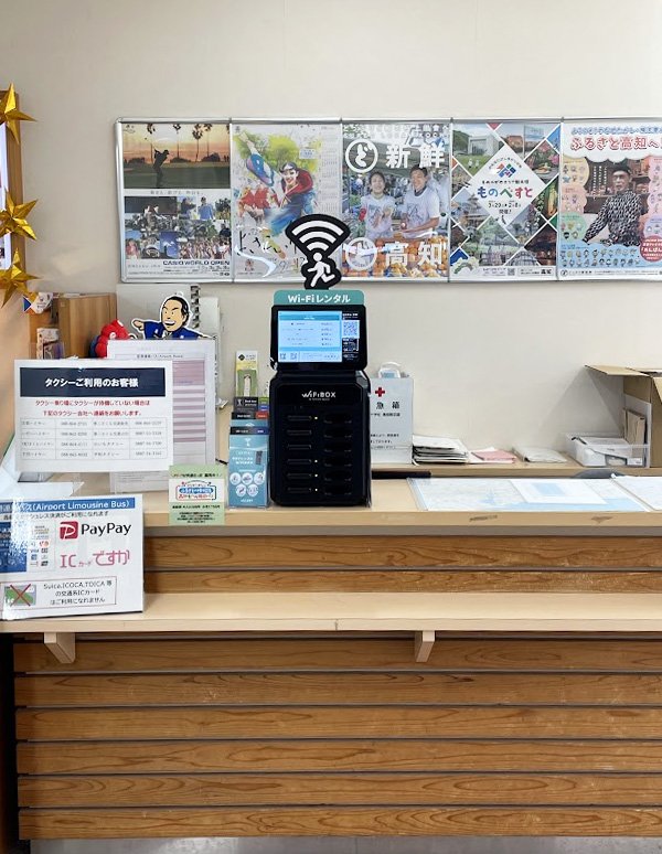 高知龍馬空港 1F 到着ロビーでWi-Fiが必要な方、高知龍馬空港 1F 到着ロビーへ移動中に予約したい方に便利です。